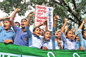 Photo: Students of Champa-Parul Government Primary School at Mirpur staged a rally
