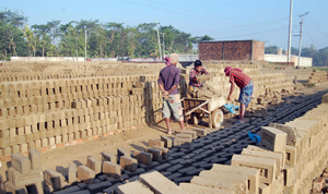 Photo: SYLHET: Laboures at work in a brick field to carry bricks