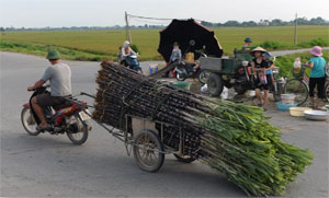 Photo: THANH OAI (Viet Nam): A farmer rides a motorcycle pulling a cart loaded
