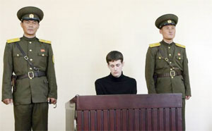 Photo: US citizen Matthew Todd Miller sitting on a witness box during his trial