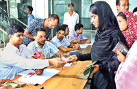 Photo: Workers of Tuba Group garment factories receiving their dues
