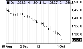 Platinum sank to the lowest level since 2009, extending the first quarterly loss this year, on concern demand for the metal used in pollution-control devices in cars may be faltering. Gold fell toward a nine-month low. The metal for immediate delivery declined as much as 1.7 per cent to $1,278.88 an ounce, the lowest price since Oct. 5, 2009, extending a retreat from a 10-month high of $1,519.68 in July. It traded at $1,281.37 by 2:55 p.m. in Singapore, according to Bloomberg generic pricing. Gold slid as much as 0.3 per cent to $1,204.75 after dropping yesterday to $1,204.57, the lowest since Jan. 2. Platinum fell 6.5 per cent this year as the dollar rose and output in South Africa resumed after a strike. In Europe, which accounts for 25 per cent of global demand, car sales grew at the slowest pace this year in August, while data today showed Japan’s auto sales extended declines in September. Investors reduced net-long positions for a third week to the lowest this year in the week ended Sept. 23, according to businessweek.com