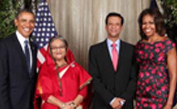 Prime Minister Sheikh Hasina attended a reception accorded by US President Barack Obama and First Lady Michelle Obama at Waldorf Astoria Hotel in the USA on Tuesday evening (US eastern standard time). Prime Minister Sheikh Hasina's Adviser on ICT Sajeeb Wazed Joy, also her son, accompanied her at the reception. Barack and Michelle warmly received Hasina at the main entrance of the grand hall of Waldrof Astoria as she arrived there to join the party. The PM registered her appreciation for the reception accorded by the US President and the First Lady in honour of the heads of government and state of the countries participating in the 69th UN General Assembly (UNGA), being held at the UN headquarters in New York. As Hasina arrived at the entrance Michelle hugged her and led her to the large hall room while Barack turned to Joy and said: ‘You look fine’. After exchanging greetings with Barack and Michelle, Hasina appreciated the US President for his speech at the UN Climate Summit-2014. Obama also lauded the Bangladesh Prime Minister’s speech at the UN Climate Summit. Hasina also thanked Obama for his commitment to save the planet from the adverse impacts of climate change, according to private TV channels.