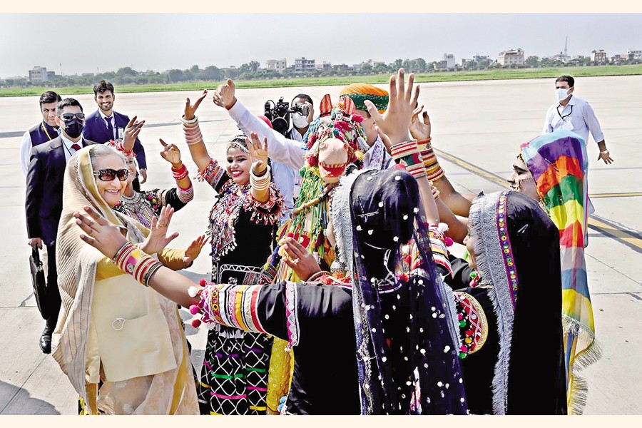 Earlier in the morning, the Bangladesh prime minister arrived in Ajmer in Rajasthan to offer prayers at Khwaja Gharib Nawaz Dargah Sharif, the mazar (shrine) of Sufi Moinuddin Chishti on the last day of her visit to India.