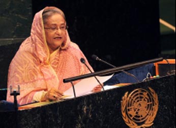 Prime Minister Sheikh Hasina has urged the United Nations to play the central role as the custodian of global peace, security and development saying the evil forces destroying secular fabrics of the nations should be eliminated. Expressing her grave concern over volatile global security situation and emergence of religious militancy and violent extremism, she said the volatile global security situation continues to pose significant challenge to international development. Sheikh Hasina said, ‘Threat to peace anywhere is a threat for entire humanity. We cannot achieve sustainable development in the absence of durable peace and security.’ Addressing the 69th session of the United Nations General Assembly on Saturday, the Prime Minister said Bangladesh strongly believes in the centrality and legitimacy of the UN as the custodian of global peace, security and development. She said terrorism and extremism remain major impediments to global peace and development. Bangladesh maintains a ‘zero-tolerance’ policy to all forms of terrorism, violent extremism, radicalisation and religion-based politics, she said. Sheikh Hasina said Bangladesh government is entrenching democracy, secularism and women empowerment to ideologically defeat terrorism and extremism. She said, Bangladesh's commitment to international peace has manifested through proposal of Bangladesh ‘Culture of Peace and Non-violence’ and later adopted by the 68th session of the UNGA, according to a news agency.