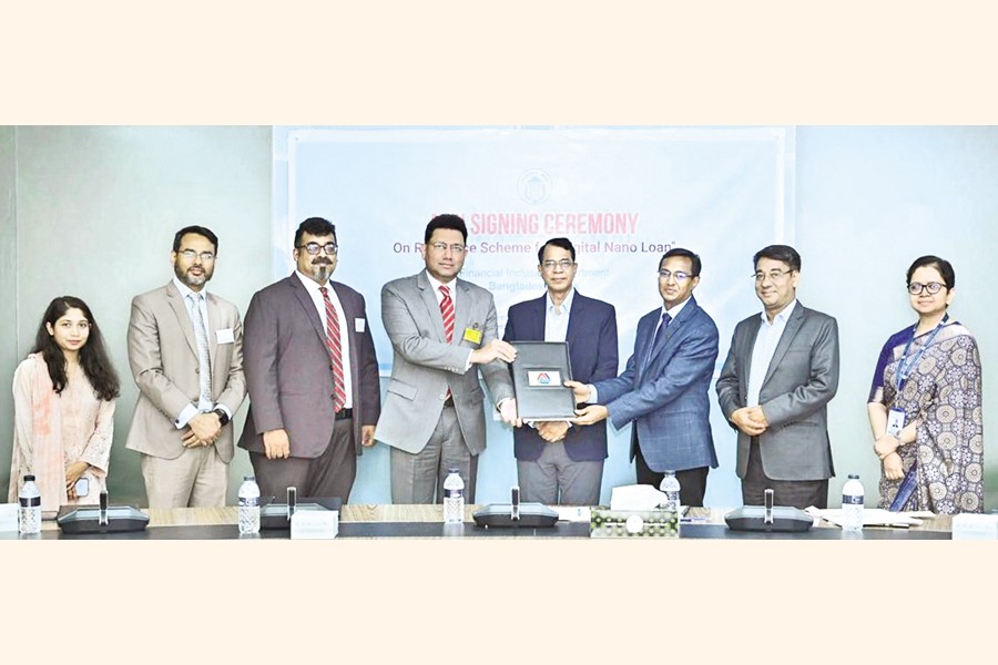 Prime Bank has signed an agreement with the Bangladesh Bank (BB) to avail of the central bank's refinance facility for digital nano loans. The signing ceremony took place at the Bangladesh Bank office recently. This initiative marks a significant step toward expanding access to affordable, digital credit facilities for underserved and unbanked segments of society, in line with the government's and Bangladesh Bank's vision of building a cashless Bangladesh. Through this refinance scheme, Prime Bank will be able to offer fully digital loans to eligible customers at a lower interest rate, making small-scale credit more accessible, affordable and convenient for individuals across the country. The agreement was signed by Prime Bank CEO Hassan O. Rashid and Bangladesh Bank's Financial Inclusion Department Director Iqbal Mohasin.