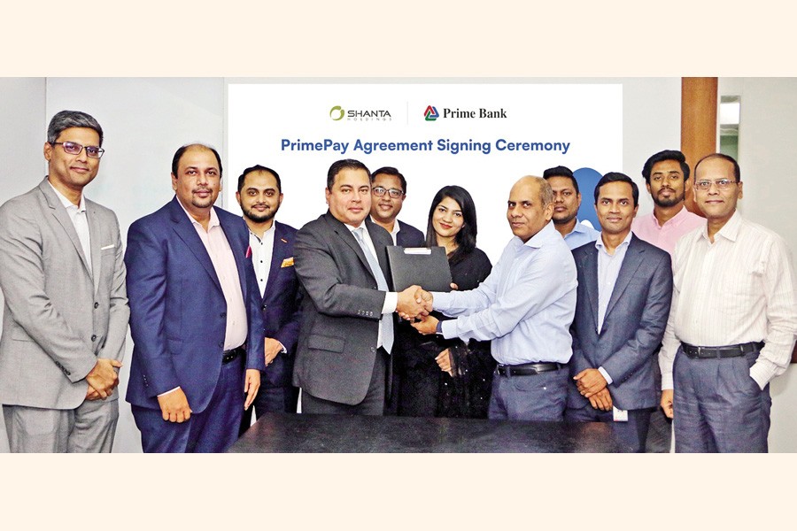 Prime Bank has signed an agreement with Shanta Holdings Limited recently at Shanta Holdings office to bring it under the services of Primepay, Prime Bank's omni digital channel for all types of corporate payments & MIS from anywhere at any time. Additional Managing Director of Prime Bank Faisal Rahman and Executive Director, Group - Finance of Shanta Holdings Md. Anisul Hoque, were present at the signing ceremony.