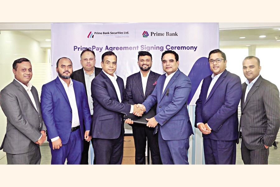 Prime Bank has recently signed an agreement with Prime Bank Securities Limited (PBSL) to facilitate the latter with the automated transaction banking solutions through its sophisticated omni digital platform PrimePay, which offers a cost-effective and time-efficient transactional service with a greater transparency. Shams Abdullah Muhaimin, Deputy Managing Director of Prime Bank, and Md Moniruzzaman, Managing Director & CEO of Prime Bank Securities Limited, exchanged the documents of the agreements. Other senior officials of both the organizations were also present at the signing ceremony.
