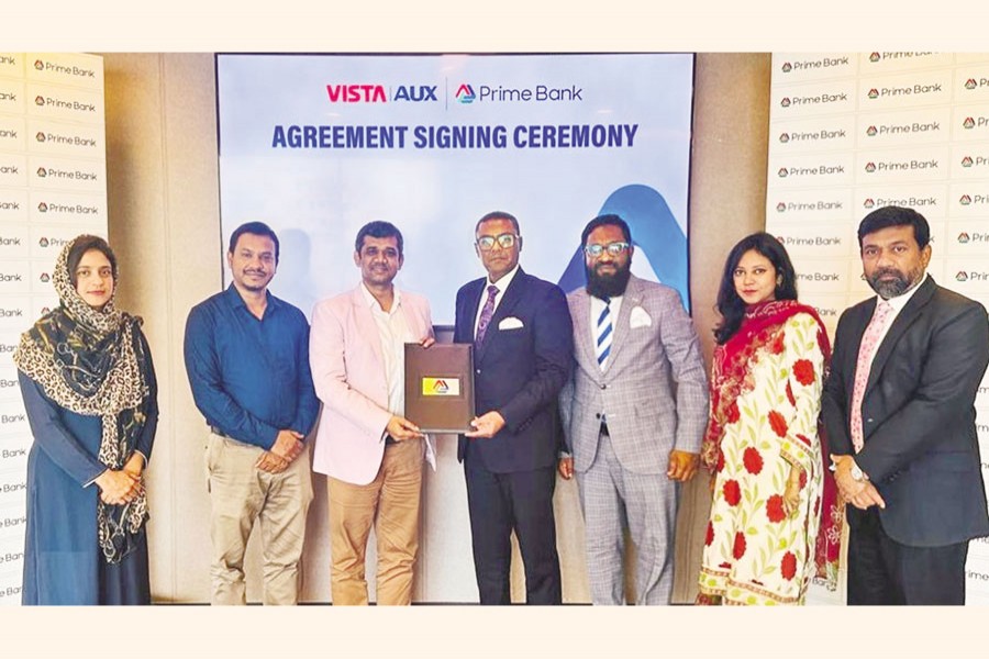 Prime Bank signs a partnership agreement with Vista Electronics at its corporate office in the capital, offering customers exclusive discounts on a range of electronic products. Joarder Tanvir Faisal, head of cards & retail assets of Prime Bank, and Lokman Hossain Akash, managing director of Vista Electronics, signed the agreement, while Hossain Mohammad Zakaria, head of customer propositions of Prime Bank, and Sufia Noor Shilpi, assistant general manager & head of corporate sales of Vista Electronics, were also present.