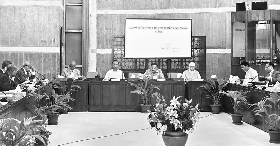 Prime Minister Tarique Rahman attends the first meeting of the Parliamentary Business Advisory Committee held with Speaker Hafiz Uddin Ahmed in the chair at the Cabinet Room of the Jatiya Sangsad Bhaban on Saturday. —Photo PID