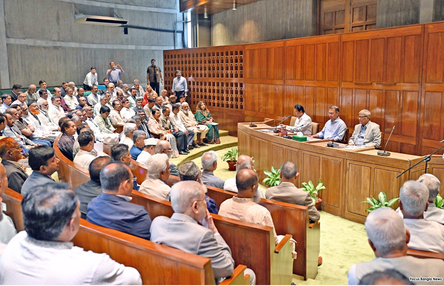 Prime Minister Tarique Rahman presiding over a meeting of BNP Parliamentary Party at the Jatiya Sangsad Secretariat in the capital on Saturday. — Focus Bangla