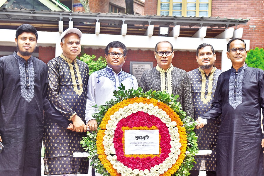 Prof Dr Md Hamid Ullah Bhiyan and Md Syed Ahmed and Dr Ahmeduzzaman placing a wreath