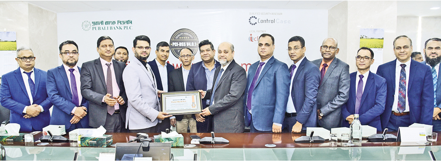 Pubali Bank has achieved the internationally recognised Payment Card Industry Data Security Standard (PCI-DSS) Certification.The certification was handed over to Pubali Bank Managing Director and Chief Executive Officer Mohammad Ali at the board room of Pubali Bank head office. The ceremony was attended by the bank's deputy managing directors Mohammad Esha, Mohammad Shahadat Hossain, Ahmed Enayet Manzur, Md. Shahnewaz Khan and Md. Anisuzzaman, among others. The certification was issued by Control Case, a PCI SSC-approved qualified security assessor, with