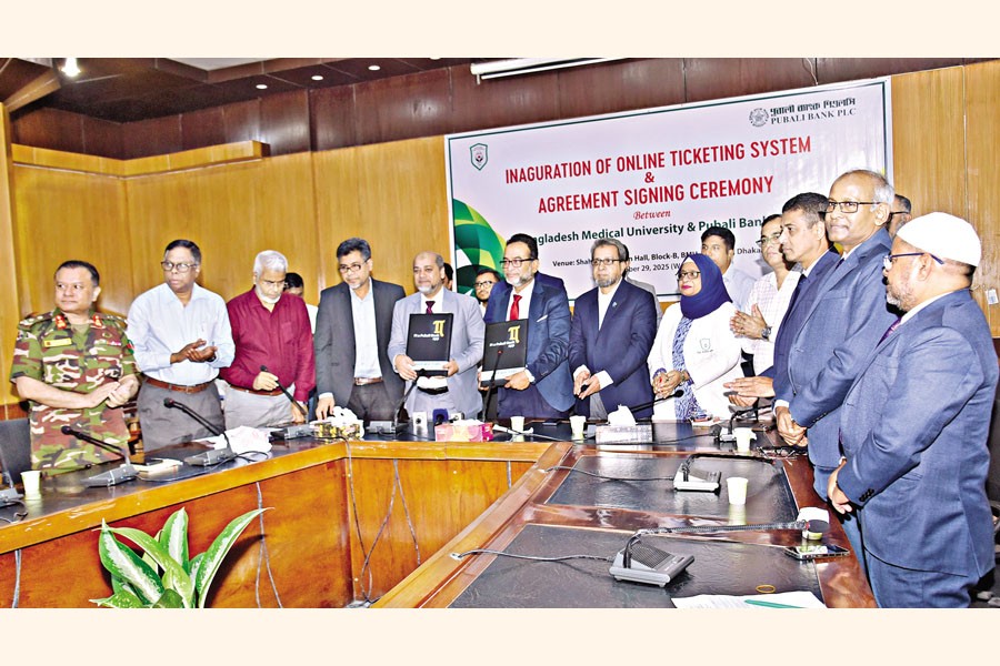 Patients of Bangladesh Medical University's (BMU) outpatient department (OPD) no longer have to stand in long queue as Pubali Bank has signed an agreement for the implementation of online ticketing system of OPD with the institution. Pubali Bank Managing Director & Chief Executive Officer Mohammad Ali; BMU Vice Chancellor (acting) Professor Dr. Md Shahinul Alam, Pro Vice Chancellor (administration) Professor Dr. Md. Abul Kalam Azad, and Pro Vice Chancellor (research & development) Professor Dr. Md. Mujibur Rahman Hawlader participated in the ceremony with others.
