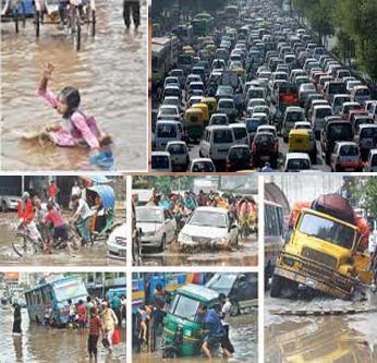 Normal life was thrown out of gear in the city due to incessant rains that led to its roads water clogged and gridlocked. The downpour badly disrupted the city’s road communications with the port city, southern, south-western and northern districts. In Dhaka, the inhabitants of the capital were witnessing heavy traffic congestion due to rainfall in the last three days that submerged in many parts of the city, its suburb and adjoining areas on Thursday afternoon and on Saturday morning. Most of the roads including Malibagh, Mouchak, Shantinagar, Mogbazar, Mirpur, Rampura, Tejgaon and parts of Old Dhaka were water-logged. Several roads were seen jam-packed with hundreds vehicles as roads went under knee-deep water for incessant rainfall in the last 72 hours exposing the capital’s poor drainage system. The water-logging caused immense sufferings to office-goers and students on Saturday morning. Besides, accidents took place as drivers and passersby could not understand the ditch as rain water submerged the roads. Meanwhile, the authorities ordered the closure of some of schools in the affected areas in the city, according to a news agency.