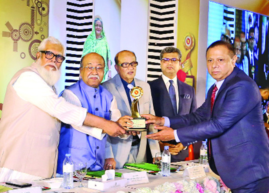 RAK Ceramics (Bangladesh) Ltd Managing Director SAK Ekramuzzaman receiving the CIP Industry-2017 award from Prime Minister’s private industry and investment affairs advisor Salman F Rahman (L) for his outstanding contribution to industries sector in the country at a city hotel recently with Industries Minister Nurul Majid Mahmud Humayun (2nd from L) and FBCCI President Sheikh Fazle Fahim (R) present
