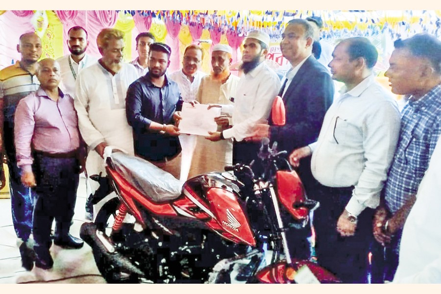 Bangladesh Krishi Bank (BKB) has awarded 31 prizes to its remittance customers through lottery from March 1 to April 15 as part of 'Remittance Festival 2025'. Saddam Hossain, a remittance customer of the Baishmouja Bazar Branch under the Brahmanbaria region, won the mega prize, a motorcycle. Ashrafuzzaman Khan, General Manager of Cumilla Division of Bangladesh Krishi Bank, presented the mega prize to the winner at a ceremony held at the Baishmouza Bazar branch on Wednesday.