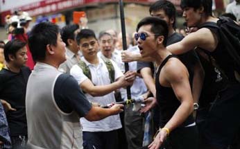 After a week of largely peaceful demonstrations demanding Beijing grant Hong Kong the unfettered right to choose its own leader, the mood turned ugly on Friday night in an area notorious for being the home of Triads.