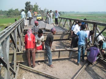 Road communications of Burimari Land Port and four upazilas of Lalmonirhat district with the rest of the country have remained suspended since Friday midnight after the girder of a bridge collapsed in Aditmari Upazila. Mohammad Suruj Mia, executive engineer of the Roads and Highways Division, Lalmonirhat, said the girder of Sarnamati Bridge broke down around 12.00am on Friday night due to its dilapidated condition, bringing the communications of Burimari Land Port with the rest parts of the country to a complete halt. Besides, the road communications of Aditmari, Kaliganj, Hatibandha and Patgram Upazilas of the district have remained cut off due to the incident. However, the repair work of the bridge has started on Saturday, according to a news agency.