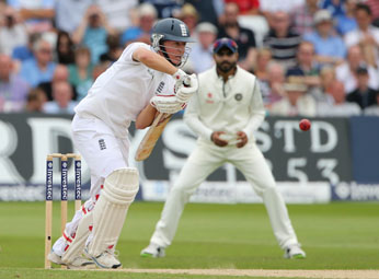 Lunch England 131 for 1 (Robson 59*, Ballance 59*) trail India 457 by 326 runs.