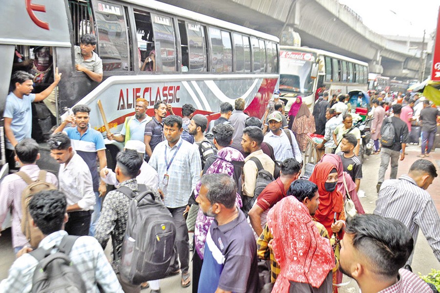 Rush of homegoers at the Sayedabad Bus Terminal, who were leaving the capital on Wednesday to enjoy the Eid-ul-Fitr festival with their near and dear ones in village homes. — Focus Bangla