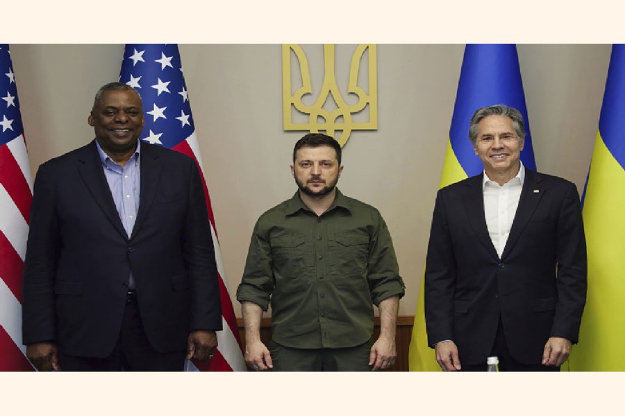 KYIV, Apr 25 (AP): Top American officials pledged Monday to help ensure Ukraine wins its fight against Russia following face-to-face talks with President Volodymyr Zelenskyy in Kyiv, while Britain said Moscow has yet to achieve a significant breakthrough in its offensive in Ukraine's eastern industrial heartland.