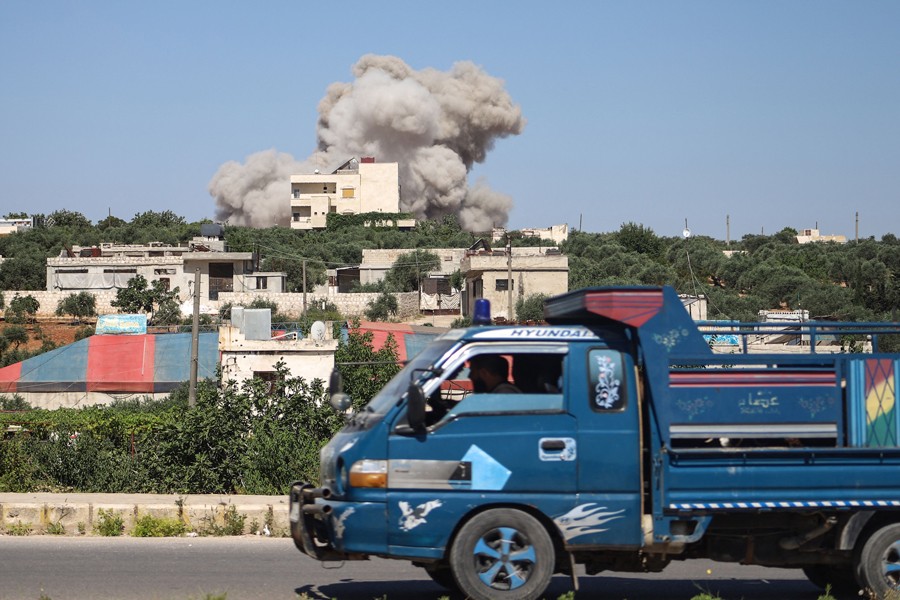 JISR AL-SHUGHUR, June 25 (AFP): Russian air strikes Sunday on Syria's northwest killed at least 11 people including seven civilians, in retaliation for deadly drone attacks blamed on rebel forces, a war monitor said.