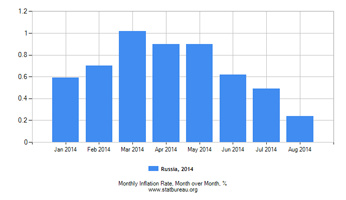 The Russian Central Bank left its key interest rate on hold at a regular meeting on Friday, arguing that inflation is still on track to hit its medium-term target even though it is set to remain above 7 percent this year. The uncharacteristically dovish stance suggests the bank is reacting to concerns about ebbing economic growth as Western sanctions over the Ukraine crisis bite. The decision keeps the bank's central policy rate, the one-week minimum auction repo rate, at 8 per cent, and was broadly expected. In an accompanying statement, the bank said inflation this year was likely to exceed 7 per cent because of an ‘aggravation of geopolitical tensions, the imposition of external trade restrictions and the impact of these developments on the ruble exchange rate dynamics.’ The bank has in effect abandoned this year's official inflation target of 5 per cent, as well as a wider range of 3.5-6.5 per cent allowed under the bank's rules, following a sweeping ban on food imports imposed in retaliation for Western sanctions, according to themoscowtimes.com