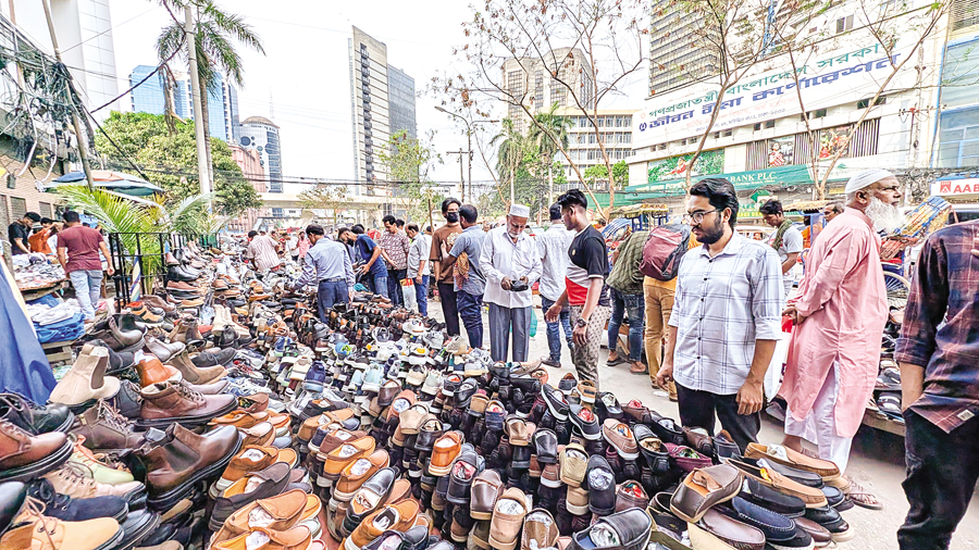 Sales at the makeshift shoe shops at the capital's Motijheel has gained