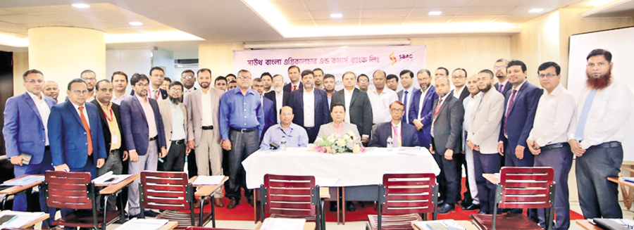 SBAC Bank training workshop: A training workshop on the 'Refinance scheme of Bangladesh Bank, ADB and JICA' was held at the Training Institute of South Bangla Agriculture and Commerce Bank Ltd. (SBAC) recently. Habibur Rahman, Managing Director and CEO (CC) of the SBAC Bank, was present as the chief guest while AKM Fazlur Rahman, Principal of the Training Institute, presided over the workshop. Bangladesh Bank Executive Director Md Obaidul Haque, Director Md Jaker Hossain and Additional Director Chowdhury Liakat Ali were present as guest speakers.