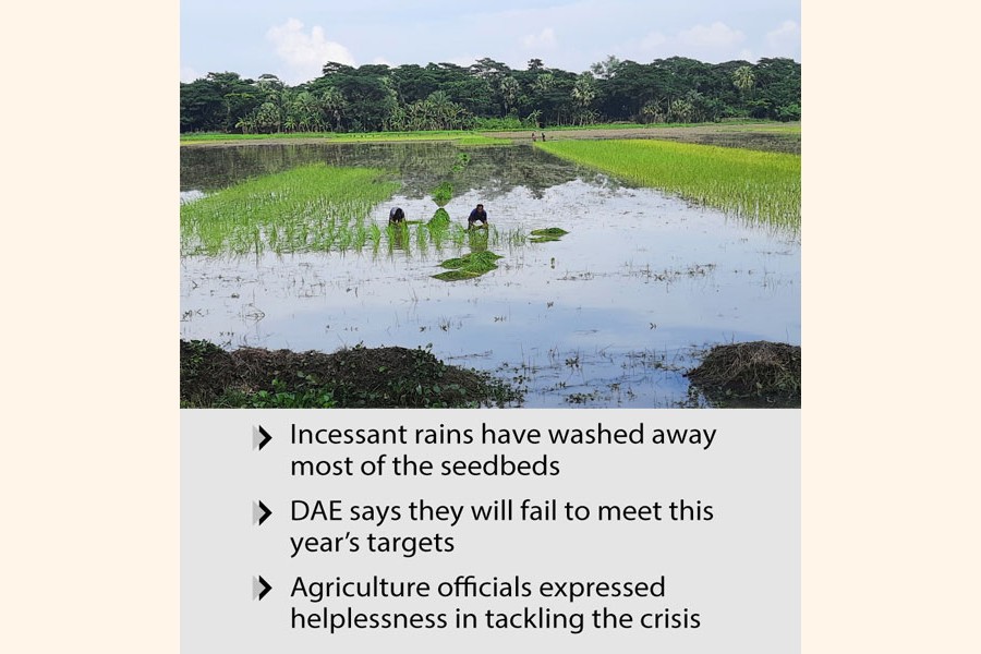 "Seedbeds getting wasted due to heavy rain is a natural calamity. We had tried to deal with the situation by supplying seeds to the farmers and advising them to choose high grounds for preparing the seedbeds. But all of our strategies have failed. There's nothing to do now except admitting the fact that our target for Aman production won't be met this year," Jobaydul said.