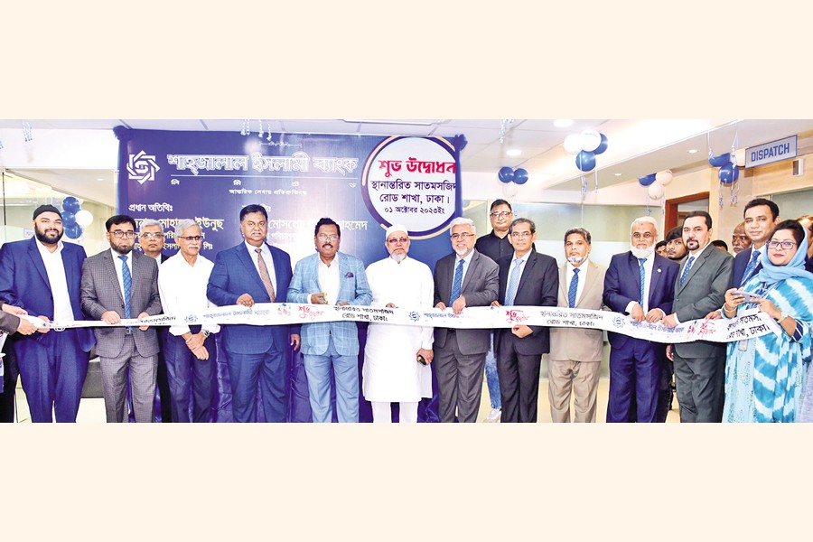 The Satmasjid Road Branch of Shahjalal Islami Bank Ltd. started banking activities at its new address -- Green City Centre, 58 Satmasjid Road, Dhanmondi, Dhaka -- on Sunday. Chairman of the bank Mohammed Younus formally inaugurated the relocated branch as the chief guest while Managing Director & CEO Mosleh Uddin Ahmed presided over in the ceremony.