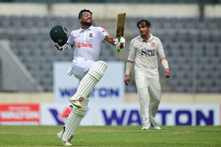 Najmul Hossain Shanto struck his third Test century as Bangladesh dominated a hapless Afghanistan to score 362-5 on the first day of the one-off Test in Dhaka on Wednesday, reports AFP.