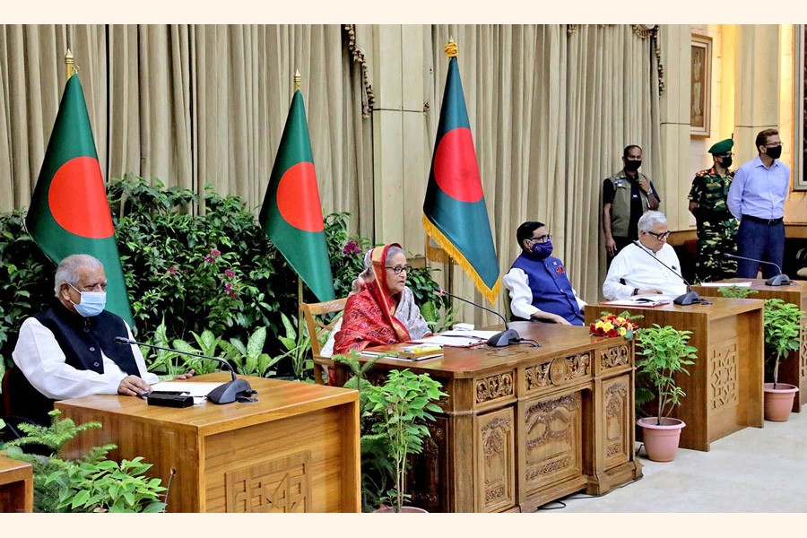 Awami League President and Prime Minister Sheikh Hasina speaking at a meeting of the Awami League Advisory Council held at her official residence Ganobhaban in the city on Wednesday — Focus Bangla