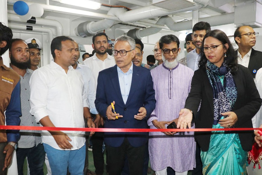 Road Transport and Bridges, Railways, and Shipping Minister Sheikh Rabiul Alam inaugurates three new ships of BIWTC at Sadarghat Launch Terminal in the capital on Tuesday. — PID