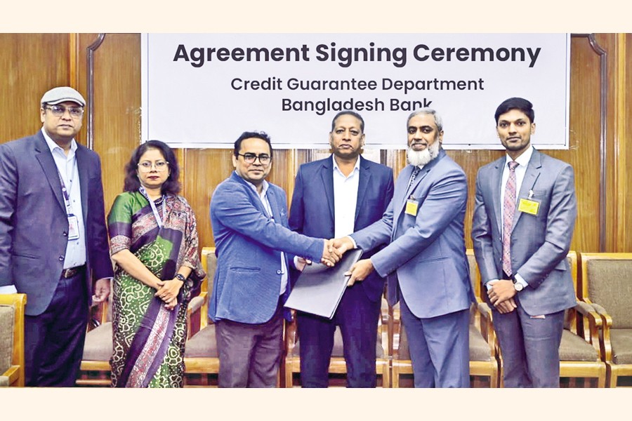 Shimanto Bank has recently signed a participatory agreement with Bangladesh Bank under the "Financial Inclusion Credit Guarantee Scheme" to provide guarantee facility under inclusive financing. Small depositors such as TK 10/50/100 account holders, marginal and landless farmers, low-income professionals, school banking account holders and small traders will be able to get financing under this scheme. The agreement was signed in the presence of Md. Sawkatul Alam, Executive Director of Bangladesh Bank. Muhammad Nazmul Haque, Director (CGD), Bangladesh Bank and Mohammad Azizul Hoque, Managing Director and CEO (CC) of Shimanto Bank signed the MoU on behalf of their respective organisations. Mohammad Imam Hossain, Additional Director, Zobaida Afroze, Additional Director, CGD of Bangladesh Bank and Sanjoy Pal, Sr. Manager (SME Banking), Shimanto Bank, were present.