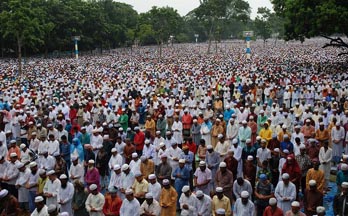 More than 0.3 million (300,000) devotees who joined the Holy Eid-ul-Fitr jamat (congregations) at Sholakia in Kishoreganj prayed for an end to Israeli genocide in Gaza and peace and prosperity for fellow Muslims across the world. The 187th Eid congregation of Sholakia, the nation’s largest Eidgah (prayer field), was conducted by Maolana Farid Uddin Masud at 10:00am on Tuesday. Politicians, bureaucrats, professionals and people from all walks of life joined the prayers. They began gathering on the banks of Narasundar River an hour before the prayers. At one point, traffic was closed around the area. The traditional three shots were fired from a shotgun, marking the beginning of the prayers. The seven-acre ground was unable to accommodate the entire crowd, and many said their prayers outside, according to bdnews24.com.