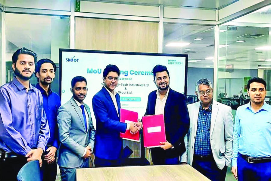 Kazi Ridwan Ahamed, Managing Director of Skoot, and Md Touhidur Rahman, Chief Business Officer of Walton Digi-Tech Industries, signed the MoU at the Walton' s corporate head office in Dhaka on Thursday, says a press release.