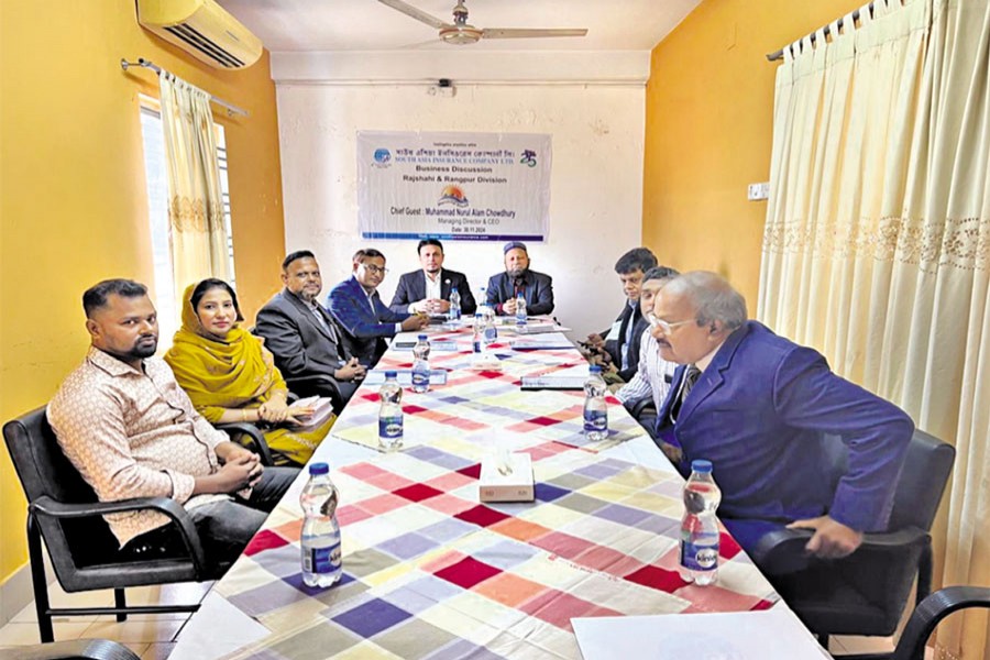 South Asia Insurance Company Limited held a business development meeting of branch In-charges of the Rangpur and Rajshahi Division at a hotel in Bogura recently. The meeting was presided over by Chief Executive Officer of the company Muhammad Nurul Alam Chowdhury. Additional Managing Director Muhammad Baker Murshed was also present.