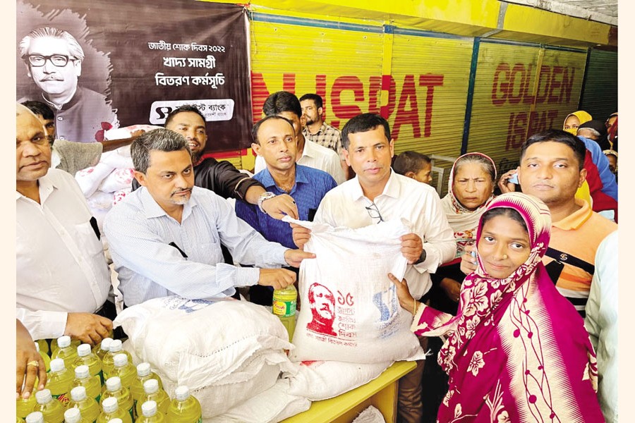 Southeast Bank Limited has distributed food items among the distressed people in Sylhet division as a part of its month-long programme to mark the National Mourning Day and pay tributes to Father of the Nation Bangabandhu Sheikh Mujibur Rahman. Suranjit Bhushan Das Roy, Head of Branch, Moulvibazar Branch of the bank, distributed the food items