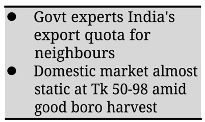 Prof Hasan also points out that the Indian government has an export quota for its neighbours in case of food items and Bangladesh already has sought the offer from the Indian government.