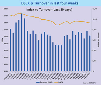 The total turnover for the week stood at Tk 28.31 billion against Tk 28.41 billion the week before with block trade contributed 3.50 per cent to the total weekly turnover.