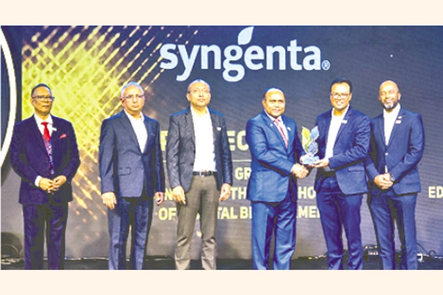 Syngenta Bangladesh has been recognised as the 'Innovation Leader of the Year 2025' by the Foreign Investors' Chamber of Commerce and Industry (FICCI) at its Sustainability & Innovation Awards ceremony, which celebrate excellence in Environmental, Social, and Governance (ESG) practices among member organisations. The award honours Syngenta's flagship sustainability initiative, "GoGrow: Enriching the Livelihood of Coastal Belt Farmers". Syngenta Bangladesh Managing Director Hedayet Ullah and Director - Corporate Affairs & Sustainability Mohammed Shahidul Islam received the award at the ceremony held in Dhaka recently.