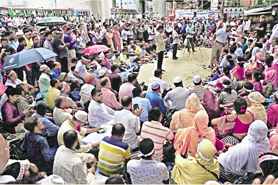 Teachers of privately-run secondary schools continued their movement for the nationalisation of their institutions in front of the Jatiya Press Club in the city on Friday — FE photo