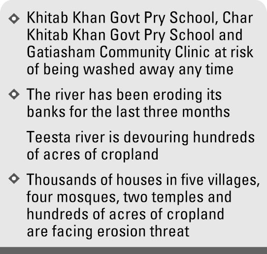 Local UP member Mamun Mandal said, "Implementing the Teesta Master Plan to prevent erosion is the demand of thousands of people in this area. He said the education of 300 to 400 students of Khitab Khan Government Primary School will be uncertain if it is washed away by the river."