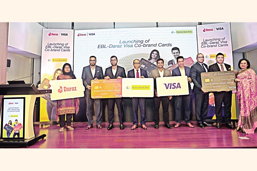 The formal inauguration of EBL- Daraz co-brand Visa card was held at Eastern Bank's head office in the city on Wednesday. Ali Reza Iftekhar, managing director and CEO of Eastern Bank; Syed Mostahidal Hoq, managing director of Daraz Bangladesh, Soumya Basu, country manager of Visa Bangladesh, Nepal, and Bhutan, and Rishi Chhabra, vice president of visa-Head of Merchant Sales and Acquiring India and South Asia; were present among others.