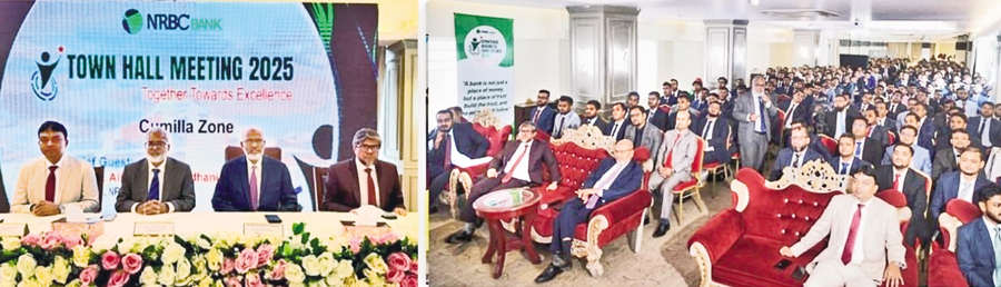A town hall meeting was held at NRBC Bank's Cumilla Zone office at a hotel in Feni on Friday. Chairman of the bank Md Ali Hossain Prodhania was the chief guest in the event. During the event, the bank's Managing Director and CEO Dr Md Touhidul Alam Khan was also presant.