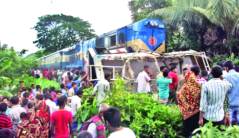 "The Khulna-bound 'Simanta Express' from Syedpur of Nilphamari rammed the bus at Barobazar rail-crossing around 3:40am, leaving nine people dead on the spot," says a police account of the tragic accident.