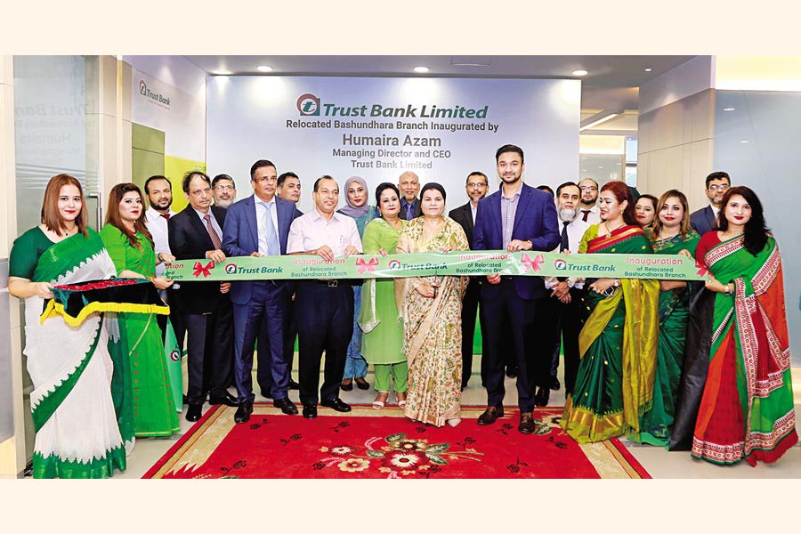 Trust Bank Limited has shifted its Bashundhara Branch to Union Tower (2nd floor) at Bashundhara R/A in the city. Humaira Azam, Managing Director & CEO of the bank, along with other senior officials inaugurated the relocated branch as the chief guest on Sunday.
