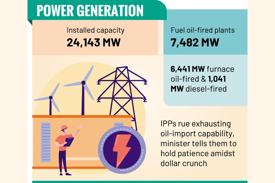 The private-sector power producers rue that they have exhausted furnace oil-import capability for dollar crunch while the minister concerned tells them to hold patience for some more days. “Given a lead time of 40 days, there is no clear line of sight for June and July 2023 fuel imports,” vice president of Bangladesh Independent Power Producers Association (BIPPA) Md Mozammel Hossain said during an FERB dialogue at Biddyut Bhaban in Dhaka Monday.